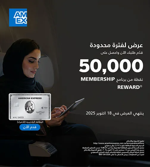 البطاقات الشخصية بطاقات الأعمال بطاقات الشركات اقبل بطاقة أمريكان إكسبريس في متاجرك اختبر الدعم الأقوى الذي تقدّمه بطاقة أمريكان إكسبريس » اكتشف البطاقة الائتمانية المناسبة لك. اخبرنا قليلًا عن نفسك وسنقترح عليك البطاقة المناسبة لك » اختار البطاقة التي تناسب أسلوب حياتك البطاقة البلاتينية® البطاقة الذهبية® بطاقة الفرسان الائتمانية من أمريكان إكسبريس® بطاقة أمريكان إكسبريس® لأصحاب الأعمال لنجد البطاقة المناسبة لك! ابحث عن بطاقة شخصية ائتمانية اعتمادية عالم من الامتيازات طريقتنا لنعبّر عن شكرنا لأعضاء البطاقة اكسب نقاطًا مع برنامج ®Membership Rewards لا تنتهي صلاحيتها أبدًا اكتشف المزيد سافر رحلة أحلامك سافر من خلال استبدال النقاط استبدل النقاط الان رحلة التوفير تمضي بمزيد العروض اختر العرض الذي تٌحب المزيد من العروض بين يديك تعرف على العروض تطبيق AMEX KSA أداة ملائمة لإدارة حساب بطاقتك في جميع الأوقات. إدارة حسابك في أي وقت ومكان تحقّق من كشف ونشاط حسابك تحكّم ببطاقاتك تحكّم بالتنبيهات كل العروض والمكافآت في مكان واحد امسح رمز QR للتحميل على جهاز iPhone أو Android. هل تحتاج للمساعدة؟ تصفّح مركز المساعدة حيث تجد الإجابات على أسئلتك. احصل على المساعدة اتصل بنا من داخل المملكة 800 124 2229 800 124 2229 من خارج المملكة (+96611) 292 6666 (+96611) 292 6666